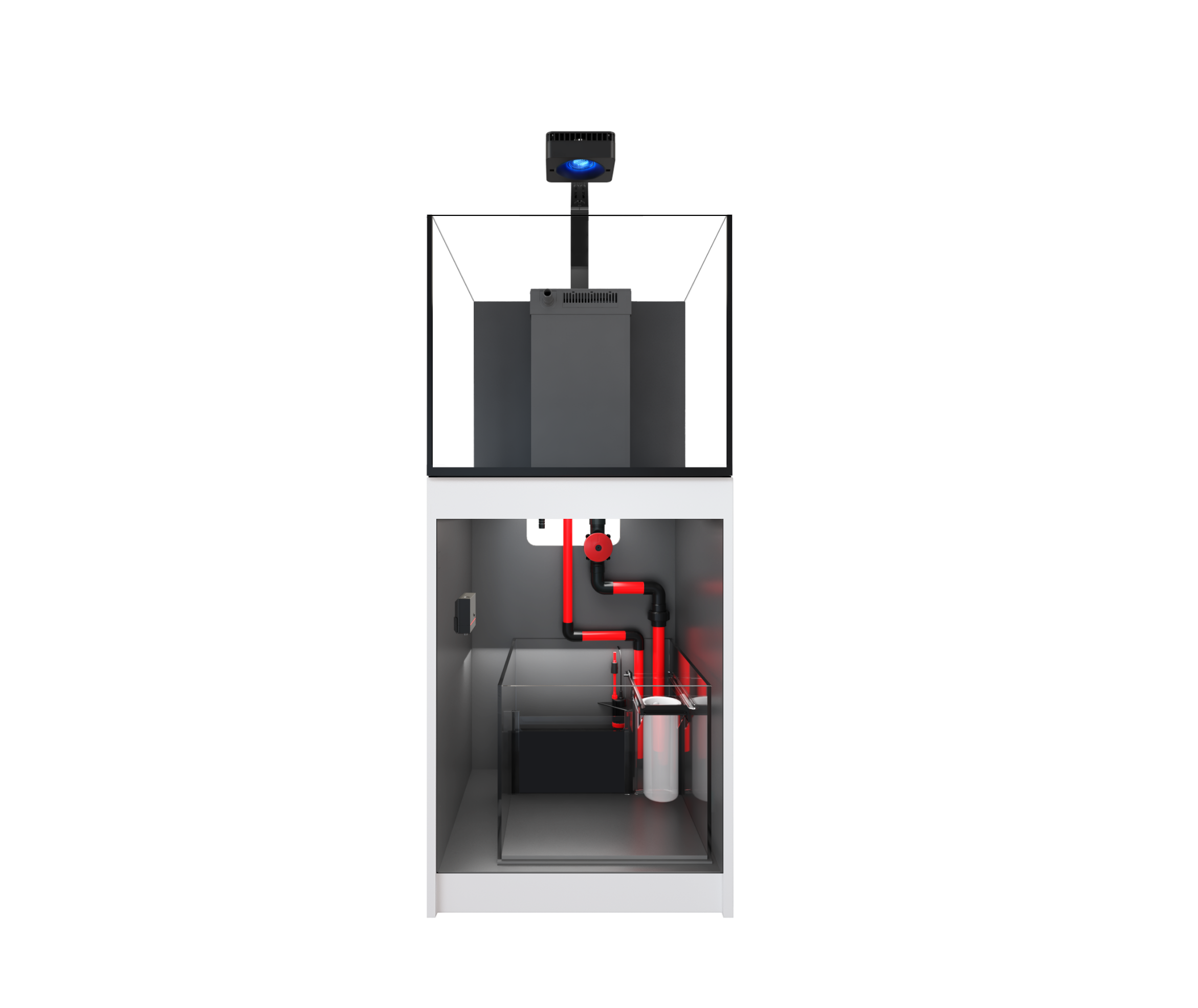 ReefMat-Ready Sump: The professional REEF-SPEC glass sump features a dedicated mechanical filtration compartment perfectly sized for plug-and-play installation of a Red Sea ReefMat automatic fleece roller filter (sold separately) or standard filter cups/media.