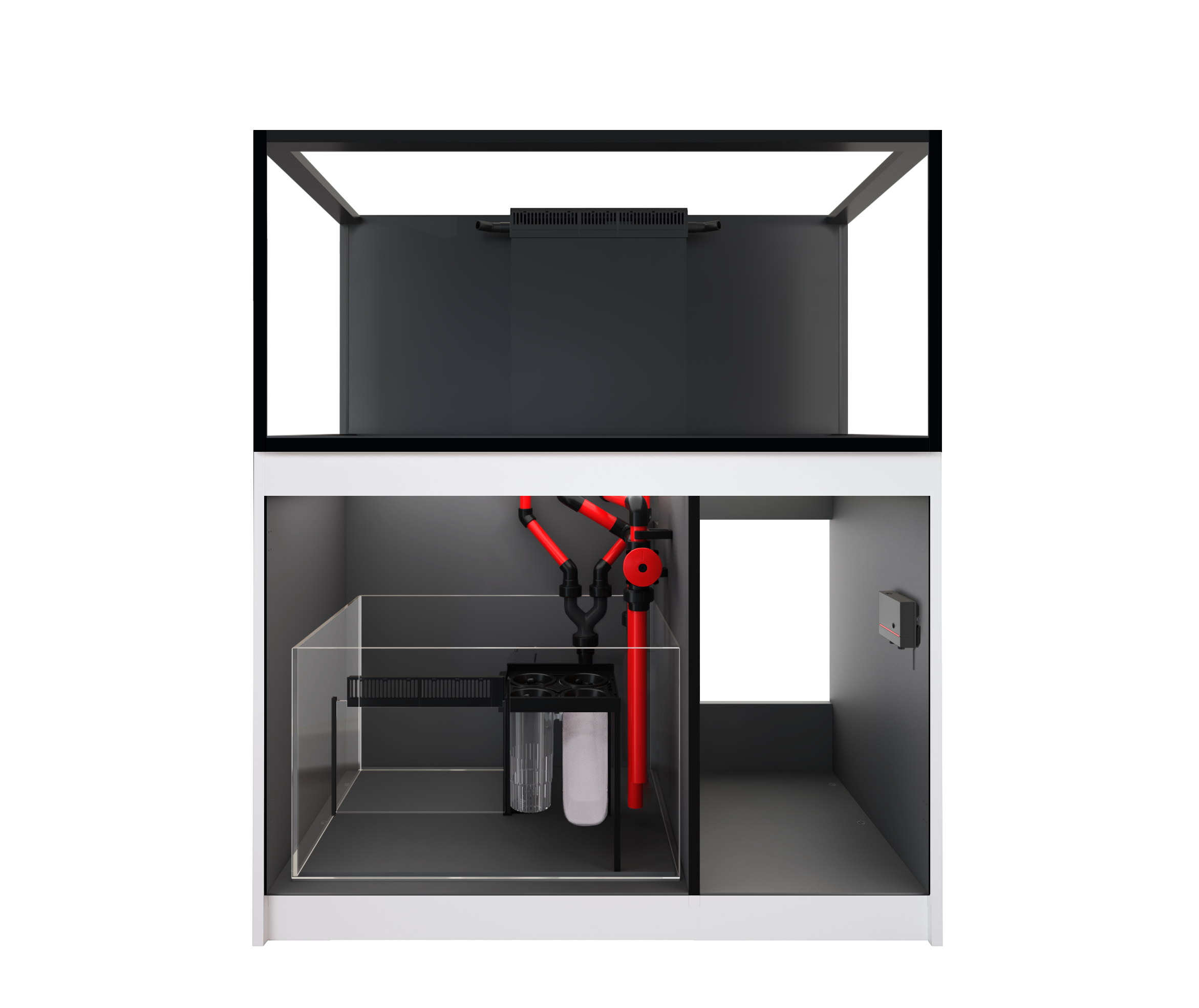 ReefMat-Ready Sump: The professional REEF-SPEC glass sump features a dedicated mechanical filtration compartment perfectly sized for plug-and-play installation of a Red Sea ReefMat automatic fleece roller filter (sold separately) or standard filter cups/media.