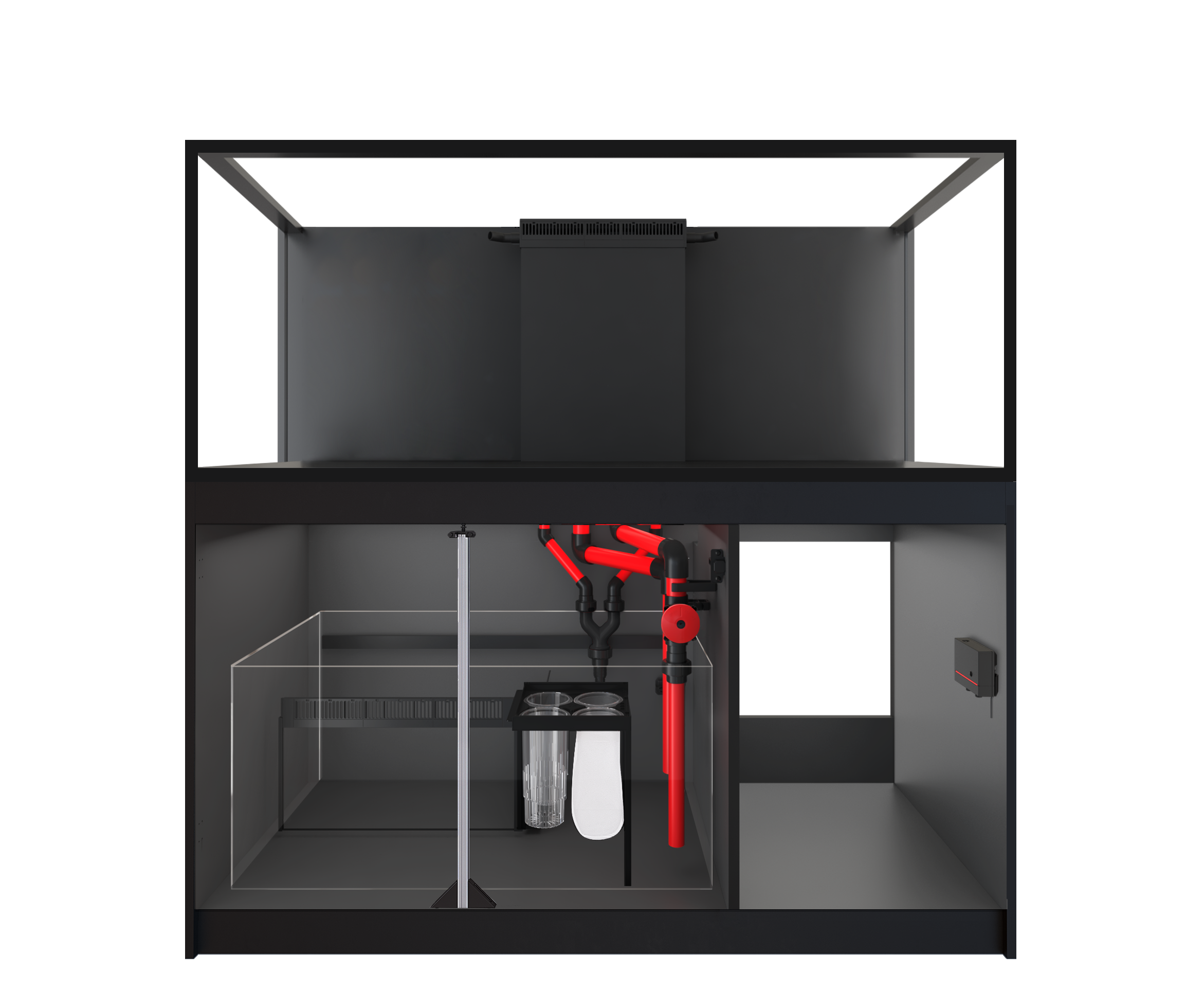 ReefMat-Ready Sump: The professional REEF-SPEC glass sump features a dedicated mechanical filtration compartment perfectly sized for plug-and-play installation of a Red Sea ReefMat automatic fleece roller filter (sold separately) or standard filter cups/media.