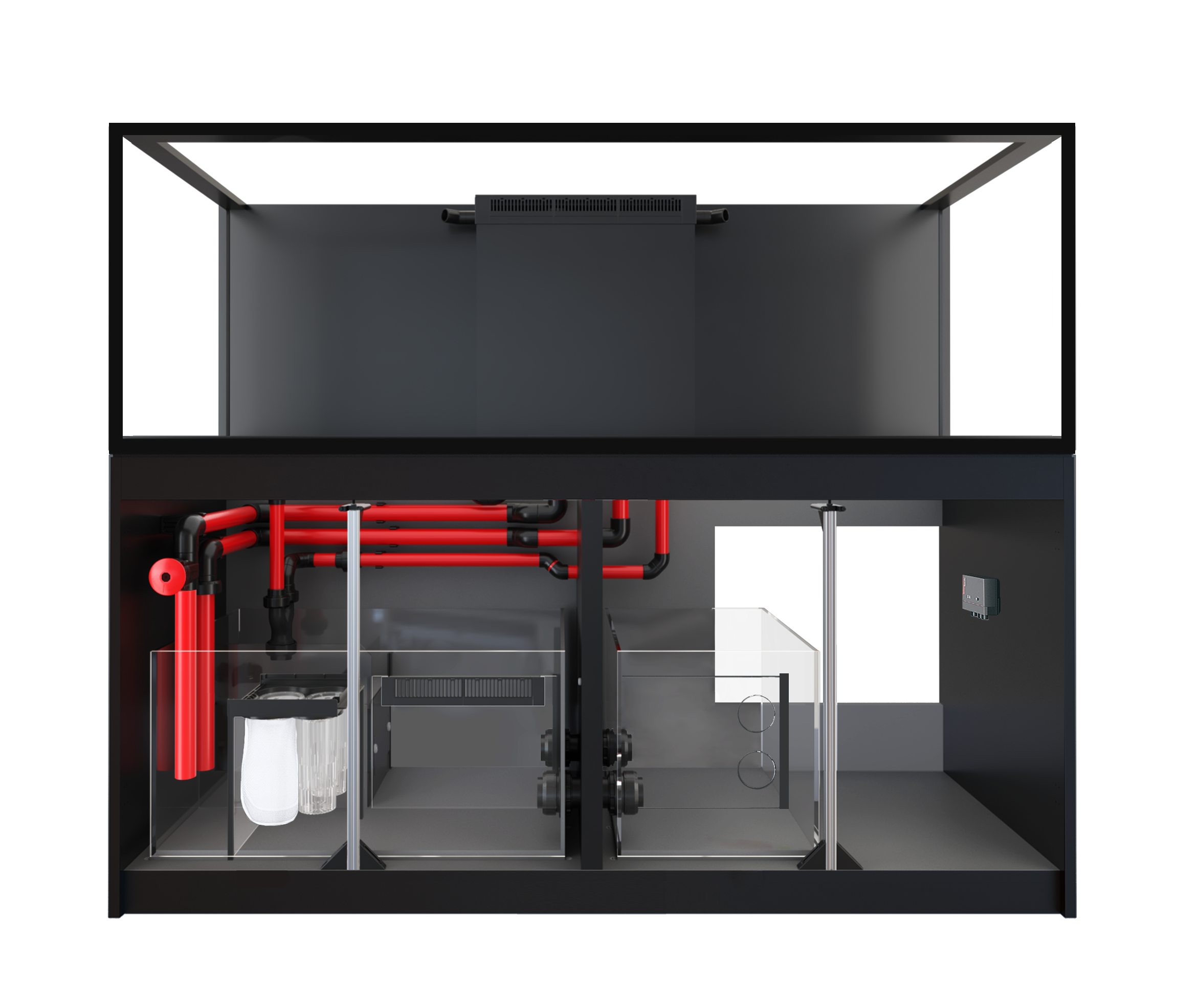 ReefMat-Ready Sump: The professional REEF-SPEC glass sump features a dedicated mechanical filtration compartment perfectly sized for plug-and-play installation of a Red Sea ReefMat automatic fleece roller filter (sold separately) or standard filter cups/media.