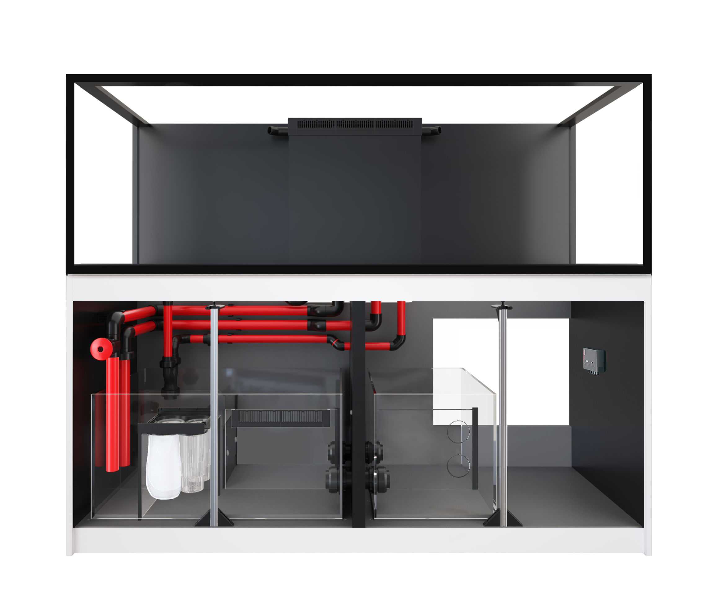 ReefMat-Ready Sump: The professional REEF-SPEC glass sump features a dedicated mechanical filtration compartment perfectly sized for plug-and-play installation of a Red Sea ReefMat automatic fleece roller filter (sold separately) or standard filter cups/media.
