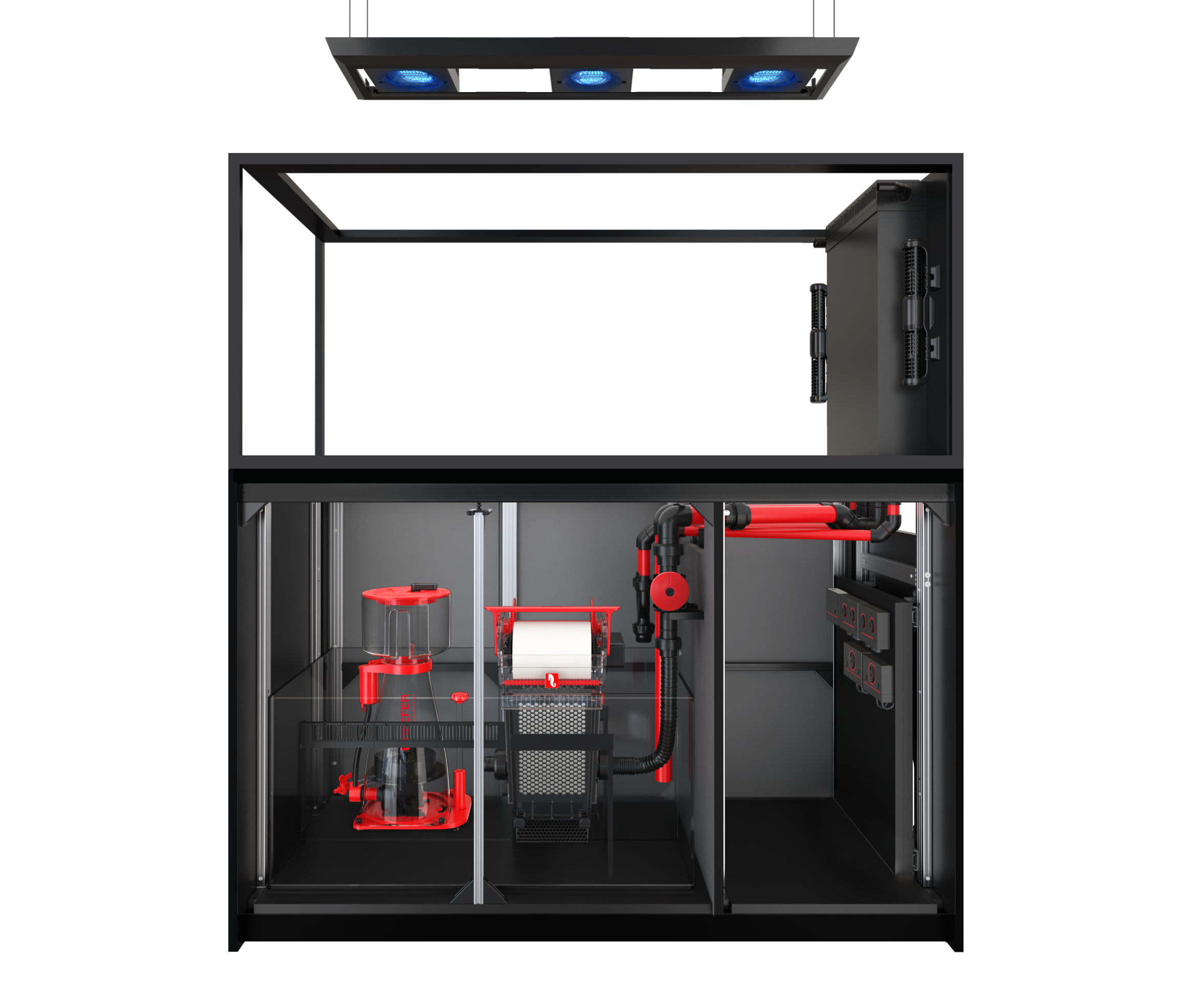 ReefMat-Ready Sump: The professional REEF-SPEC glass sump features a dedicated mechanical filtration compartment perfectly sized for plug-and-play installation of a Red Sea ReefMat automatic fleece roller filter (sold separately) or standard filter cups/media.