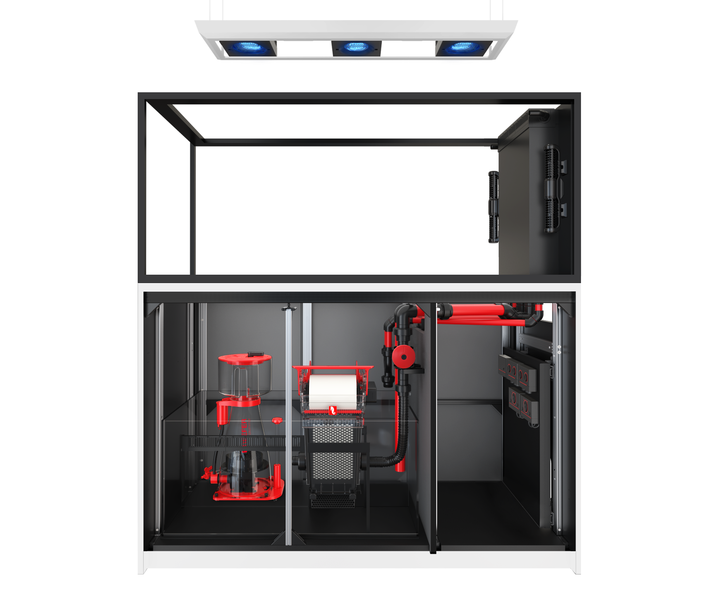 ReefMat-Ready Sump: The professional REEF-SPEC glass sump features a dedicated mechanical filtration compartment perfectly sized for plug-and-play installation of a Red Sea ReefMat automatic fleece roller filter (sold separately) or standard filter cups/media.