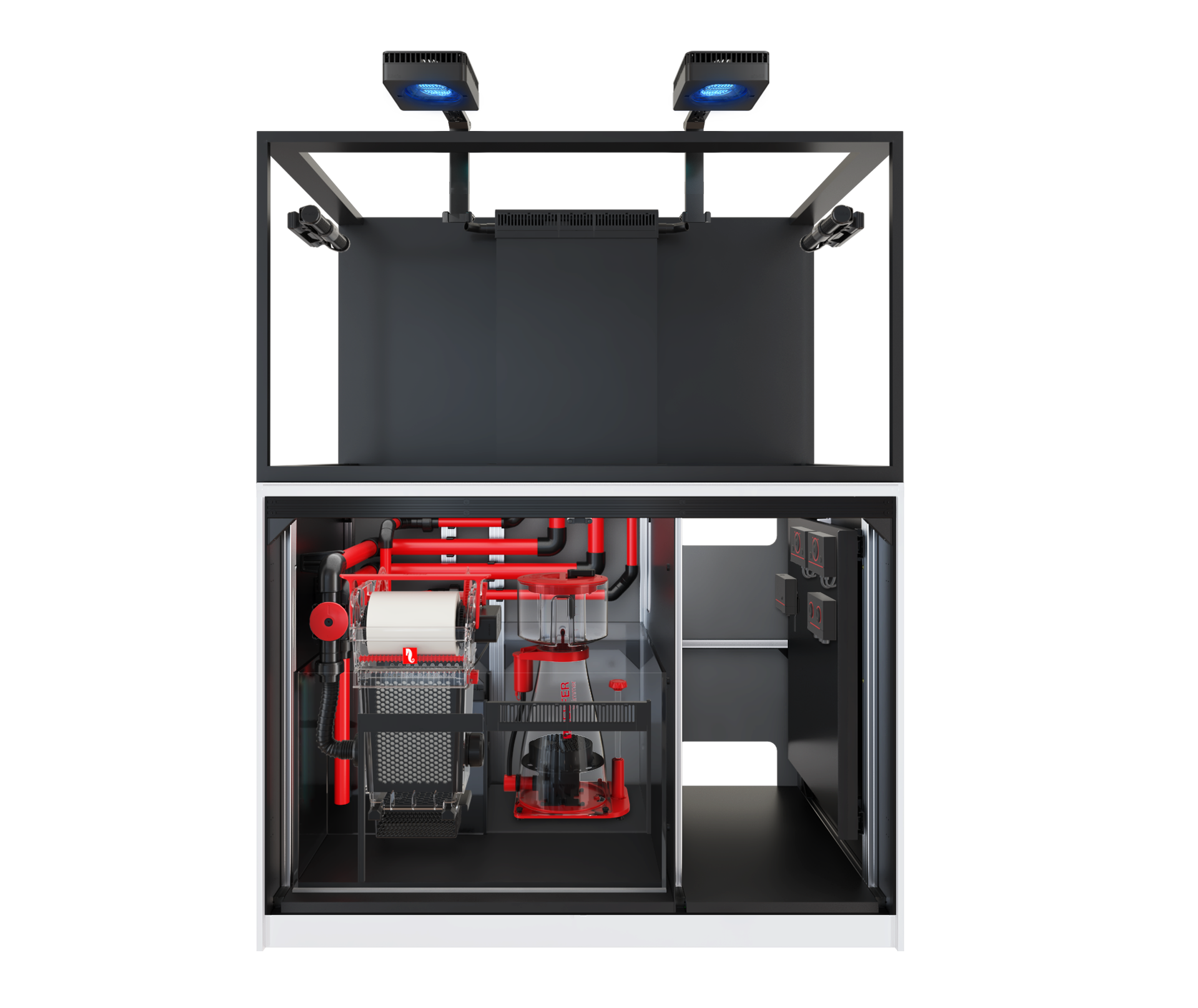 ReefMat-Ready Sump: The professional REEF-SPEC glass sump features a dedicated mechanical filtration compartment perfectly sized for plug-and-play installation of a Red Sea ReefMat automatic fleece roller filter (sold separately) or standard filter cups/media.