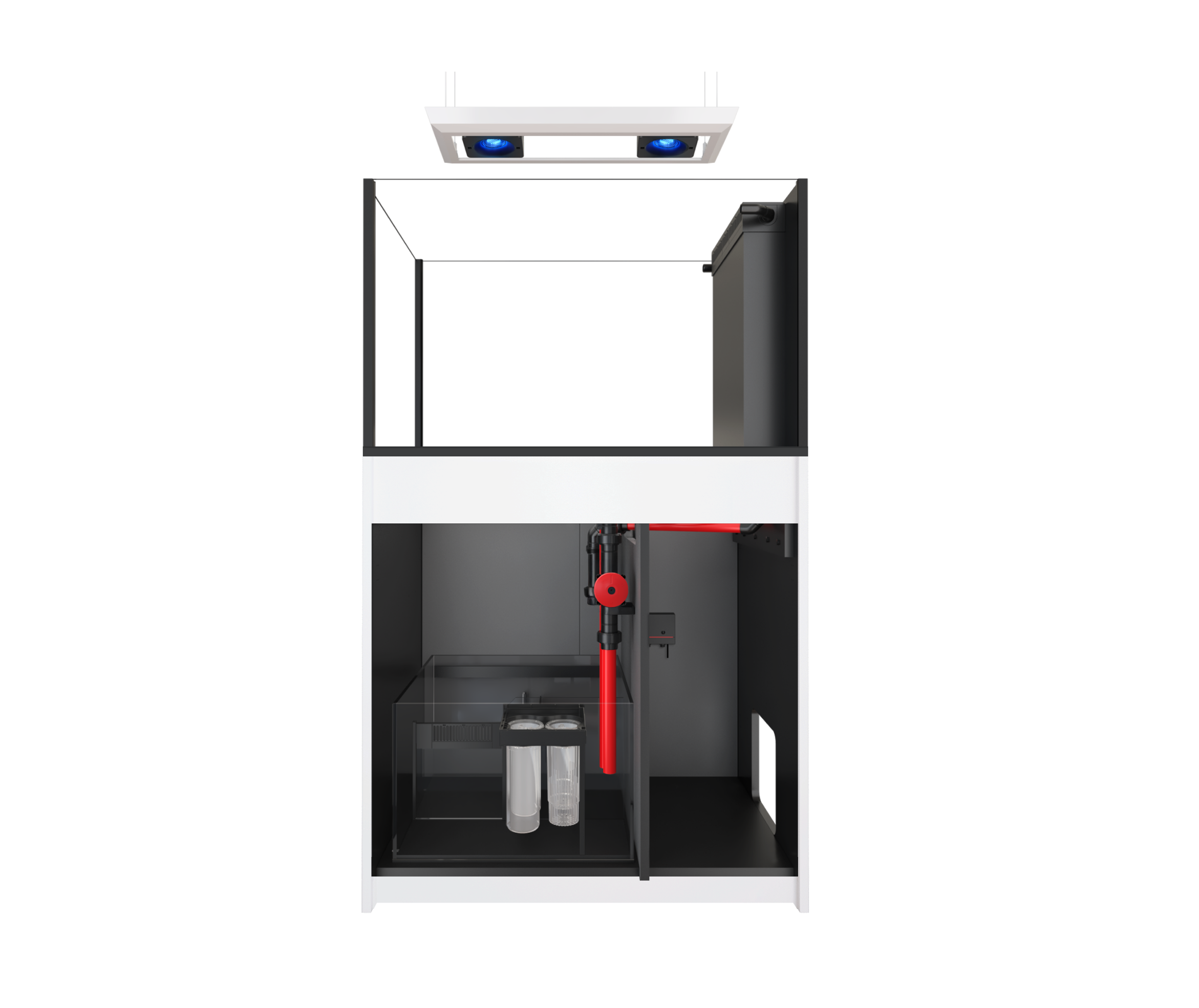 ReefMat-Ready Sump: The professional REEF-SPEC glass sump features a dedicated mechanical filtration compartment perfectly sized for plug-and-play installation of a Red Sea ReefMat automatic fleece roller filter (sold separately) or standard filter cups/media.