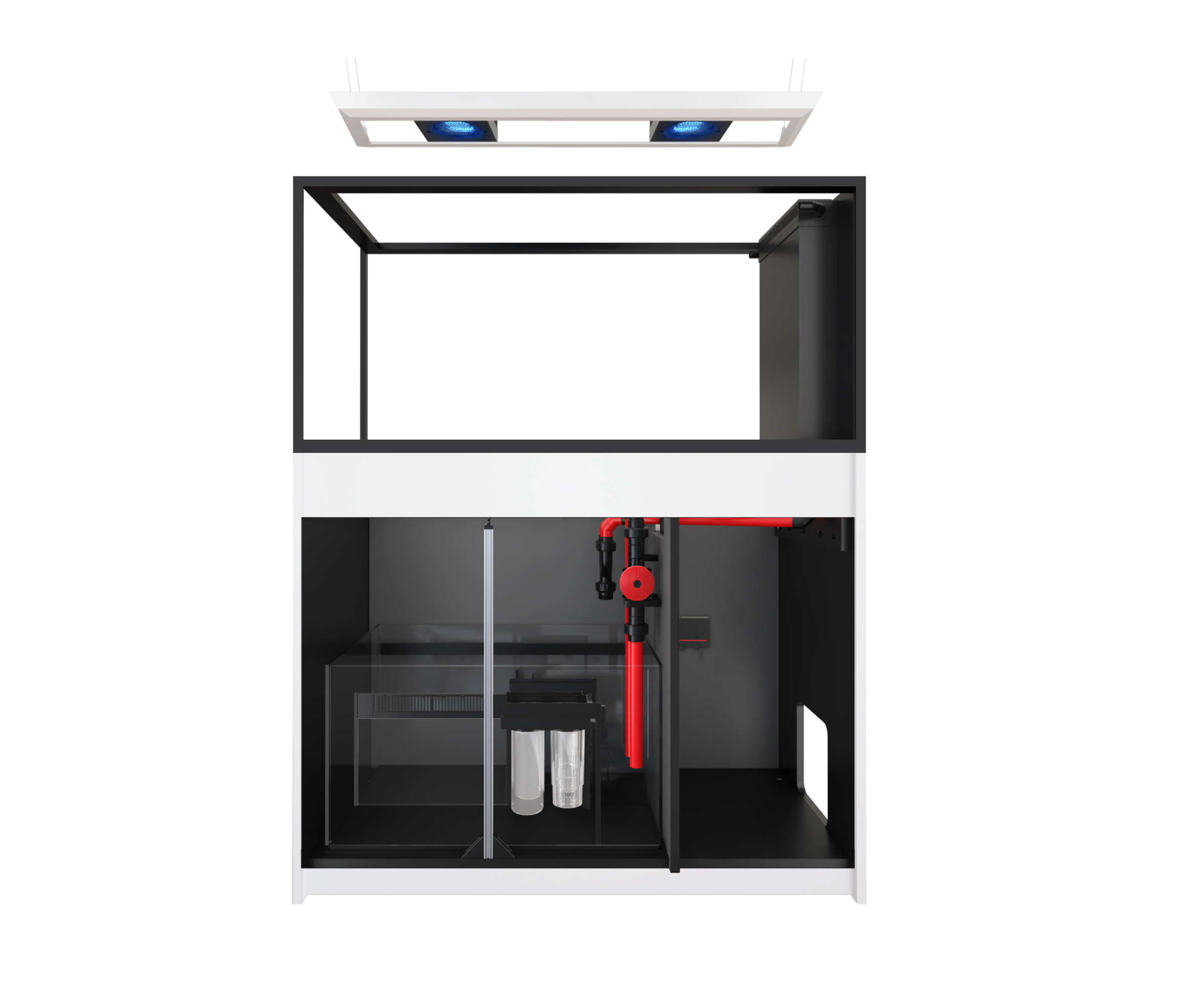 ReefMat-Ready Sump: The professional REEF-SPEC glass sump features a dedicated mechanical filtration compartment perfectly sized for plug-and-play installation of a Red Sea ReefMat automatic fleece roller filter (sold separately) or standard filter cups/media.