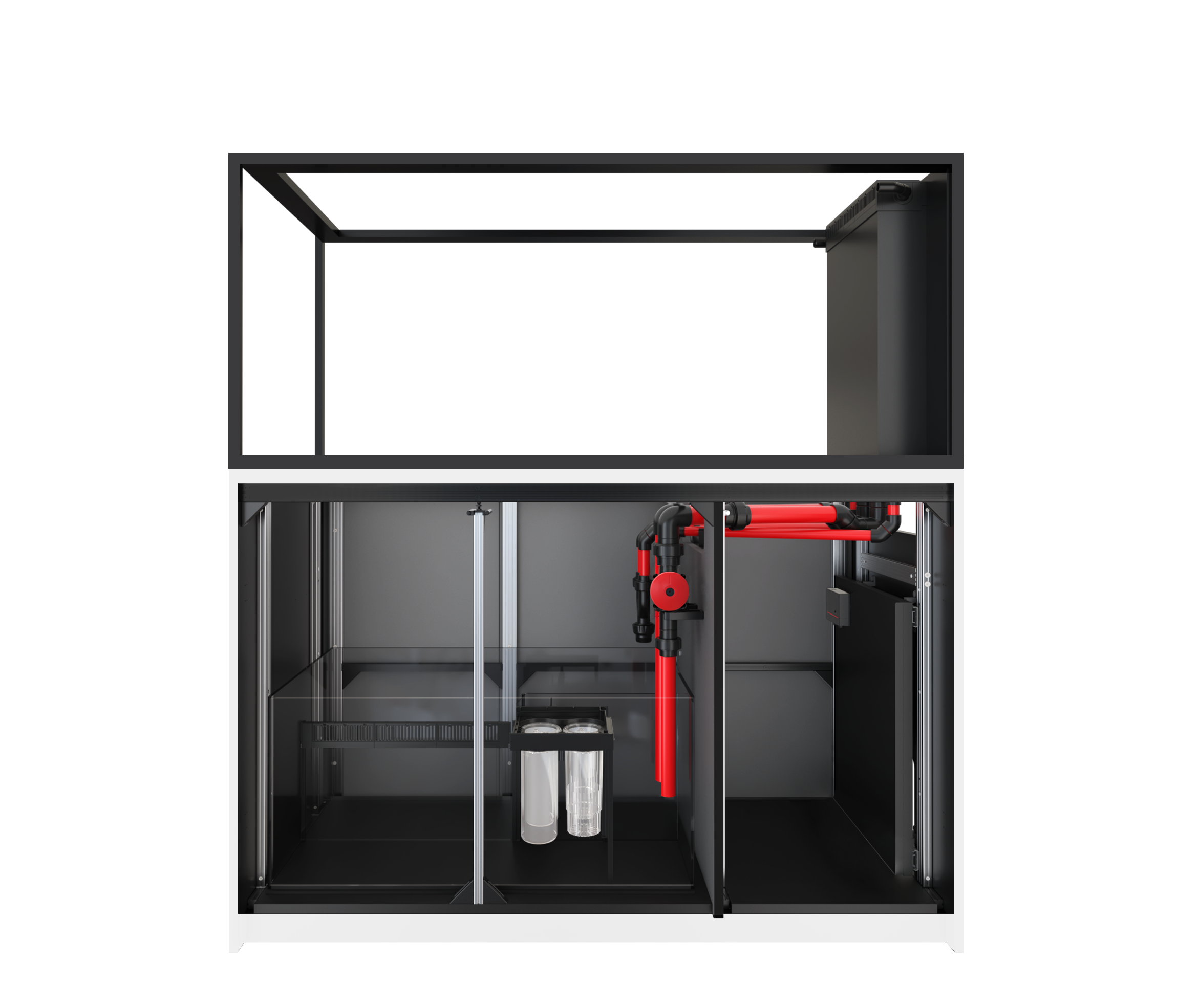 ReefMat-Ready Sump: The professional REEF-SPEC glass sump features a dedicated mechanical filtration compartment perfectly sized for plug-and-play installation of a Red Sea ReefMat automatic fleece roller filter (sold separately) or standard filter cups/media.