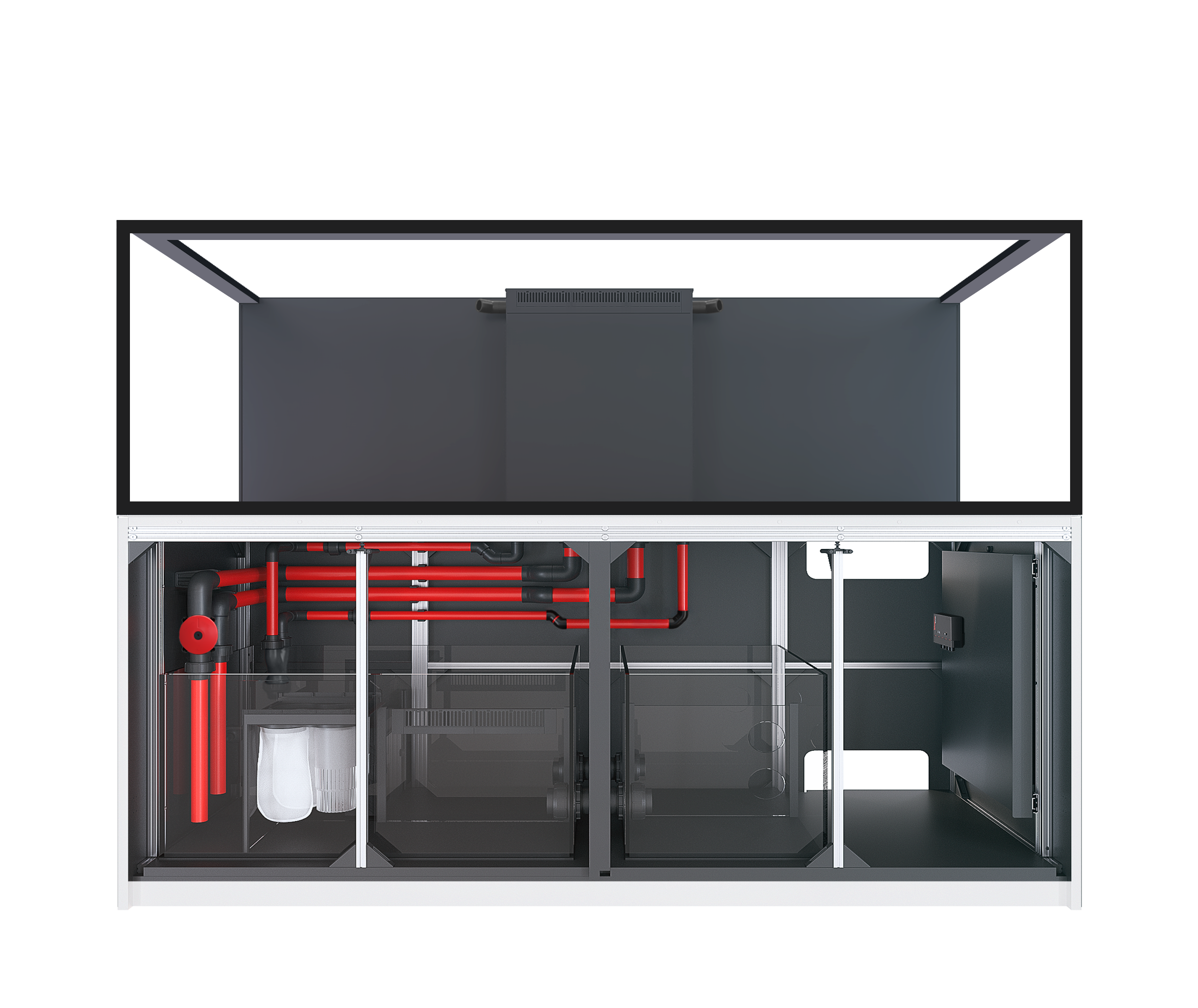 ReefMat-Ready Sump: The professional REEF-SPEC glass sump features a dedicated mechanical filtration compartment perfectly sized for plug-and-play installation of a Red Sea ReefMat automatic fleece roller filter (sold separately) or standard filter cups/media.