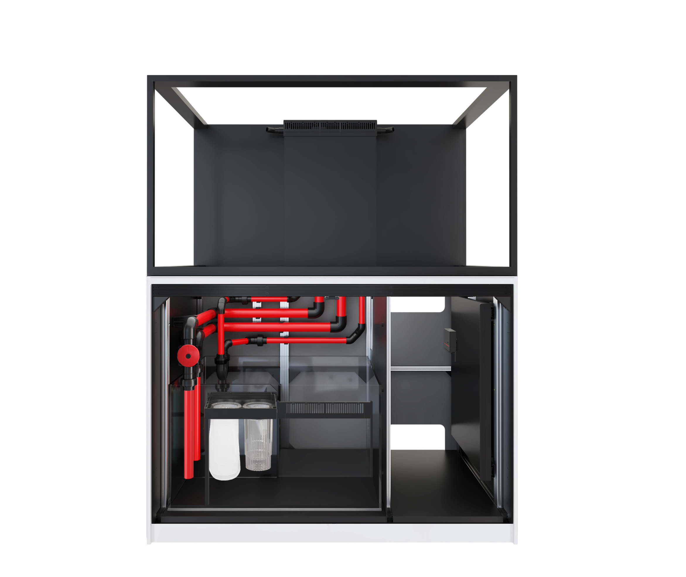 ReefMat-Ready Sump: The professional REEF-SPEC glass sump features a dedicated mechanical filtration compartment perfectly sized for plug-and-play installation of a Red Sea ReefMat automatic fleece roller filter (sold separately) or standard filter cups/media.