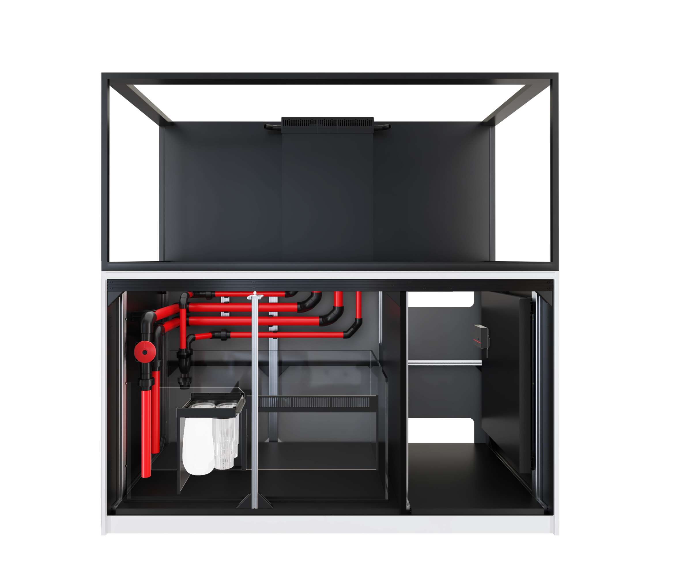 ReefMat-Ready Sump: The professional REEF-SPEC glass sump features a dedicated mechanical filtration compartment perfectly sized for plug-and-play installation of a Red Sea ReefMat automatic fleece roller filter (sold separately) or standard filter cups/media.