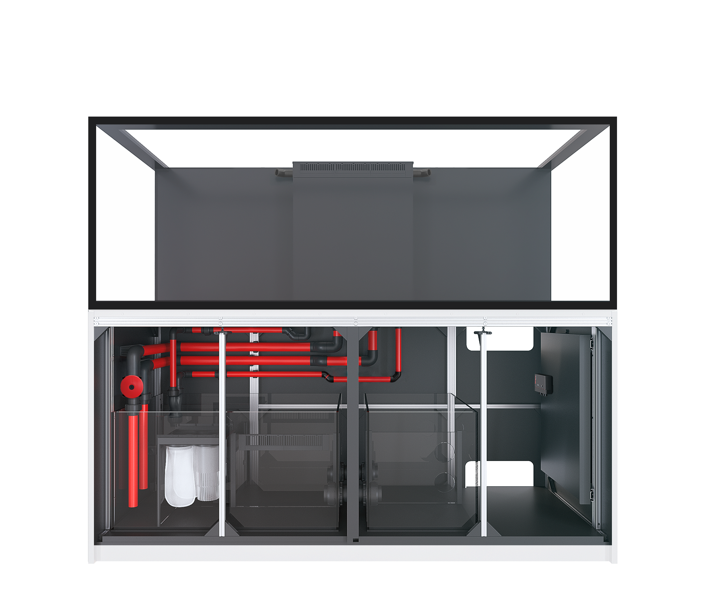 ReefMat-Ready Sump: The professional REEF-SPEC glass sump features a dedicated mechanical filtration compartment perfectly sized for plug-and-play installation of a Red Sea ReefMat automatic fleece roller filter (sold separately) or standard filter cups/media.