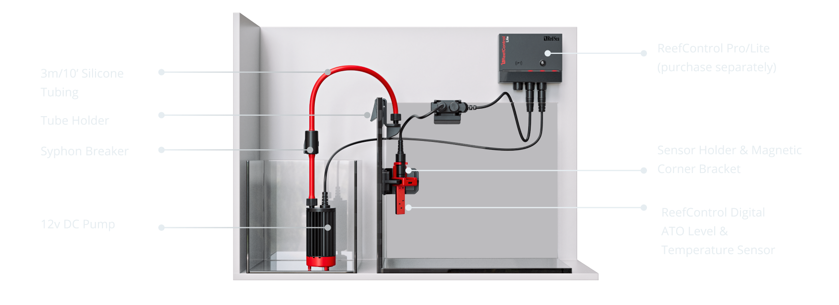 The digital ATO sensor and dc pump of the ReefControl ATO module connect directly to the ReefControl Pro or Lite to seamlessly add a fully featured ATO to your system without the need for an additional controller. (Controller sold separately)