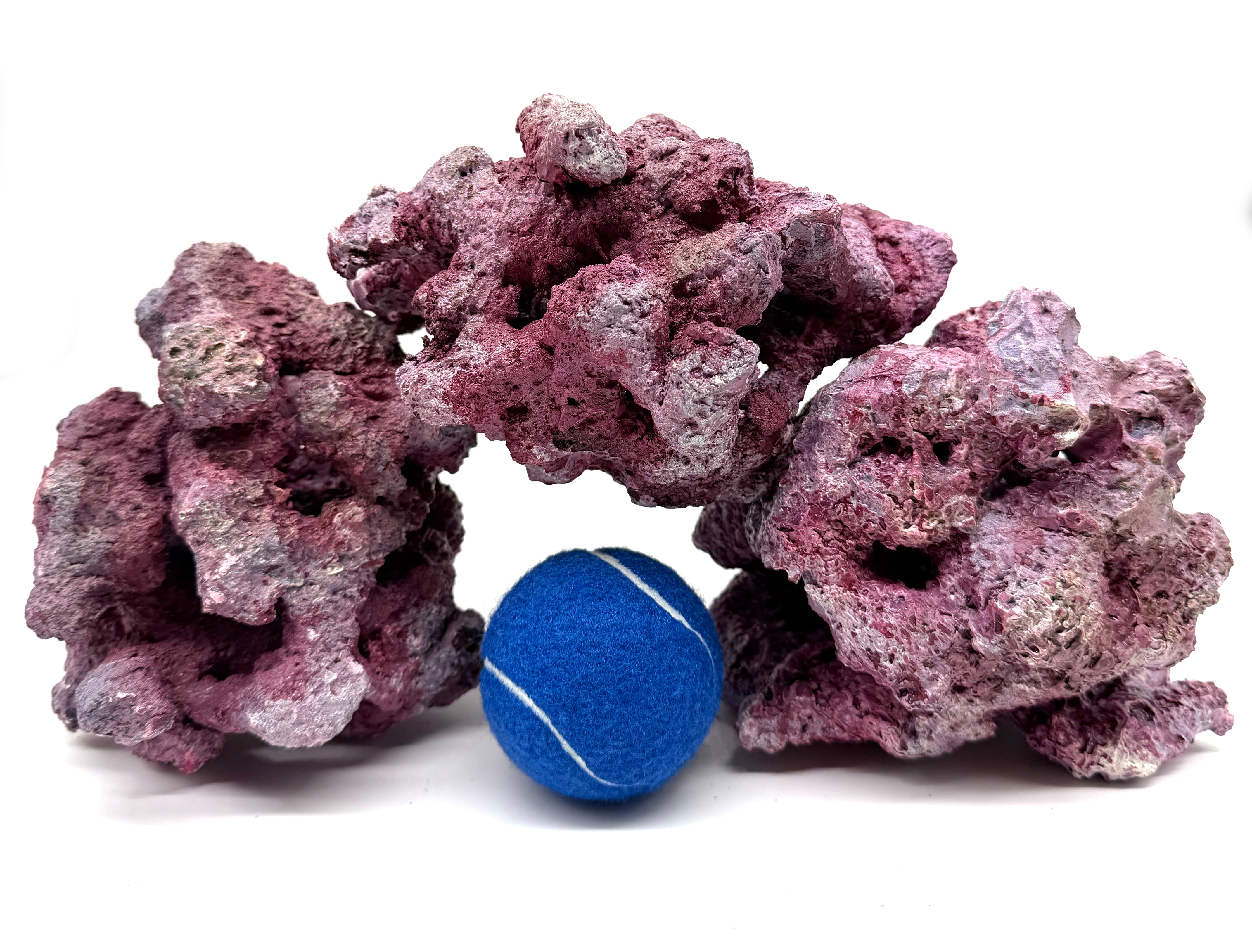 Tropic Eden Morroca Reef Rock is made of clean aragonite snow calcium carbonate, calcareous alkalis and reef minerals - the same material found in reef building corals. Each piece is unique and special as it is individually created through multiple steps of mineralization and carbonization strengthened by special heat treatment, thereafter colored with inert reef safe pigments into various shades of coralline algae-like colors, then further stabilized and cured for six months before hitting the market, which makes Tropic Eden Morroca Reef Rock stronger and better than many typical artificial rocks made of cement.