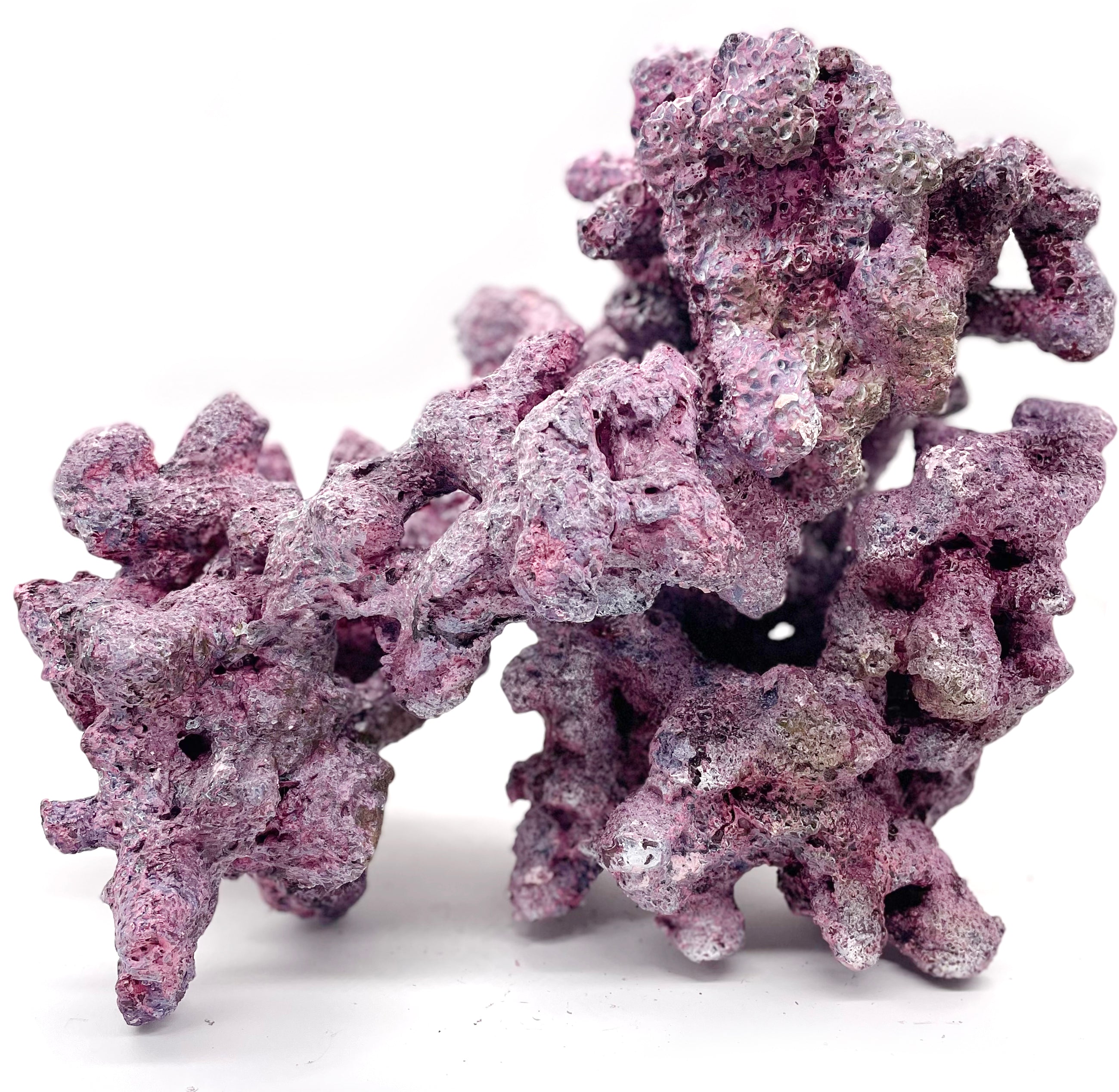 Tropic Eden Morroca Reef Rock is made of clean aragonite snow calcium carbonate, calcareous alkalis and reef minerals - the same material found in reef building corals. Each piece is unique and special as it is individually created through multiple steps of mineralization and carbonization strengthened by special heat treatment, thereafter colored with inert reef safe pigments into various shades of coralline algae-like colors, then further stabilized and cured for six months before hitting the market, which makes Tropic Eden Morroca Reef Rock stronger and better than many typical artificial rocks made of cement.