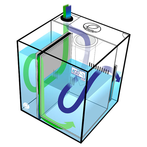 The NEW Cube Nano Refugium features innovative design with dual water channels for superior aquarium filtration. It features two separate water channels; one channel sends water to the refugium section while the second chamber sends water to the protein skimmer chamber. This unique design enables the water to travel through each compartment separately after entering the sump for better water contact time and better nutrient exportation. The advantage of better water contact time thru the water channels is the undissolved organic waste can be removed more efficiently by the protein skimmer, while having a completely separate refugium channel that allows macro-algae to aid in the removal of ammonia, nitrates, phosphates and other unwanted nutrients that cause algae blooms and more.